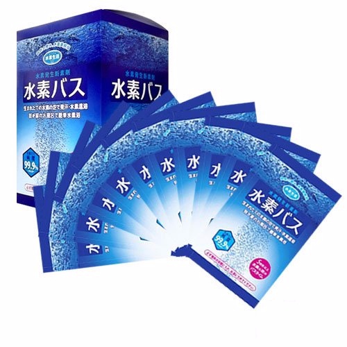 | 水素バス | 抗酸化作用で話題の、水素(H2)が泡立つ水素バブルバスが、ご家庭の浴槽で簡単にお楽しみいただけるようになりました。 お湯に沈めるだけで、純度99.9%の水素(H2)の気泡が、5時間以上も泡立ち、18,000mlの水素が生成されます。 (株式会社住化分析センター調べ) つくりたての水素(H2)は、深呼吸や素肌に付着した細やかな気泡から体内に吸収され、細胞にすみやかに届きます。 美容に健康維持に、どうぞお役立てください。 水素バスは、食品添加物だけで調合した粉末状の水素発生新素剤です。 その製造方法は、各国で製造特許を取得しています。 不織布の袋に封入して水と反応させる事により、瞬時に水素を得ることが出来ます。 軽く小さく持ち運びも保管も容易になりました。 いつでもどこでも簡単に水素浴をお楽しみいただけます。 |